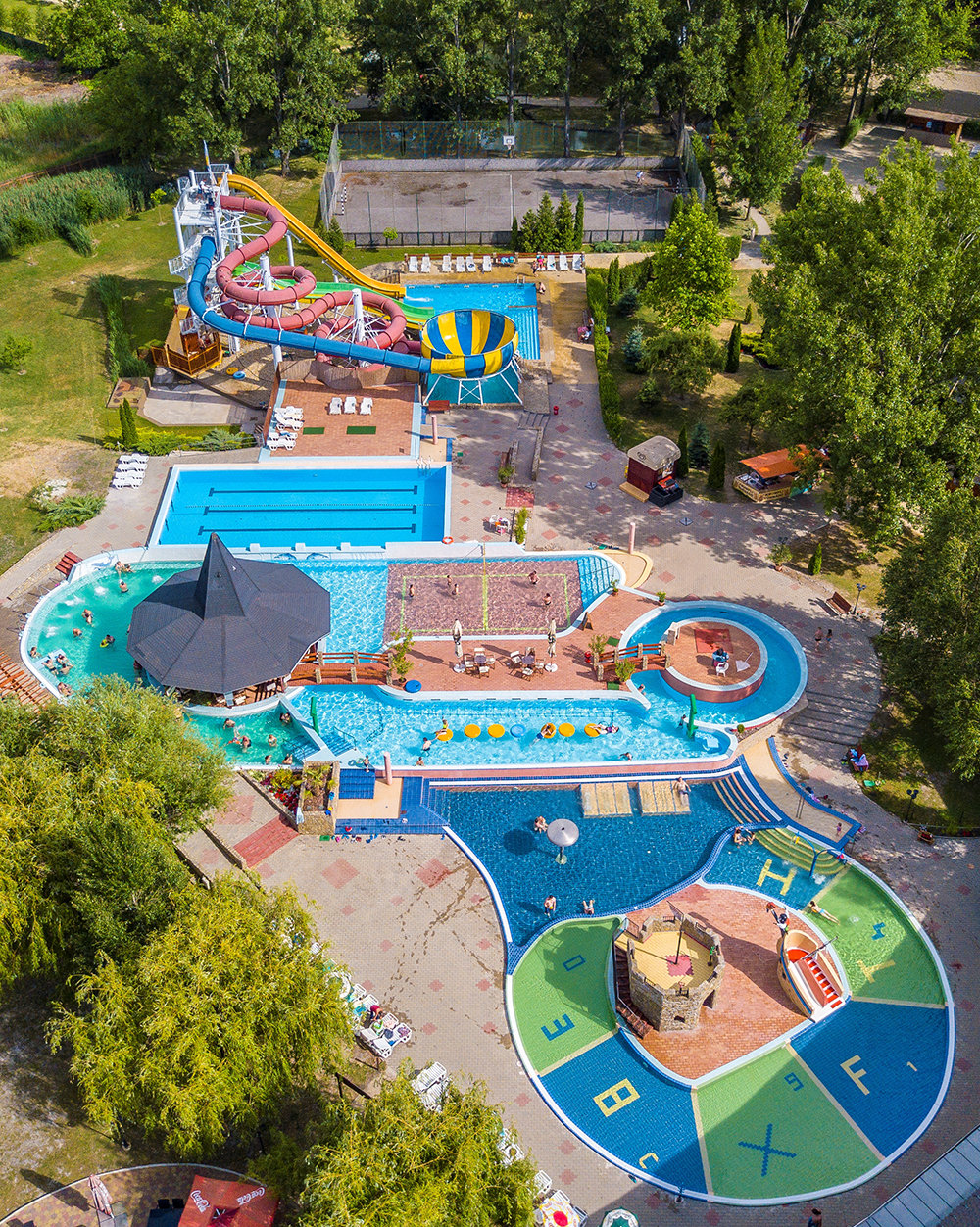 A létesítmény területén elérhető szolgáltatásokat (csúszdák, élménymedence, játszótér) a gyermekek csak meghatározott időben és felügyelet mellett vehetik igénybe.